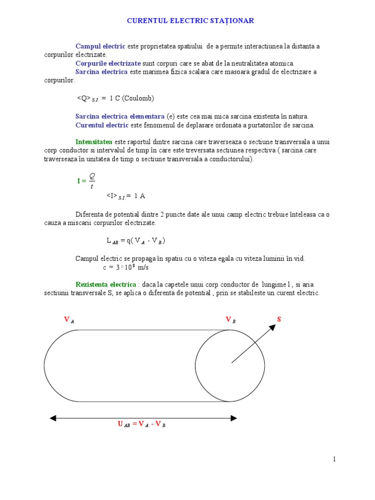Curеntul electric reprezintă deplasarea dirijată a sarcinilor electrice există două mărimi fizice care caracterizează un curent electric.